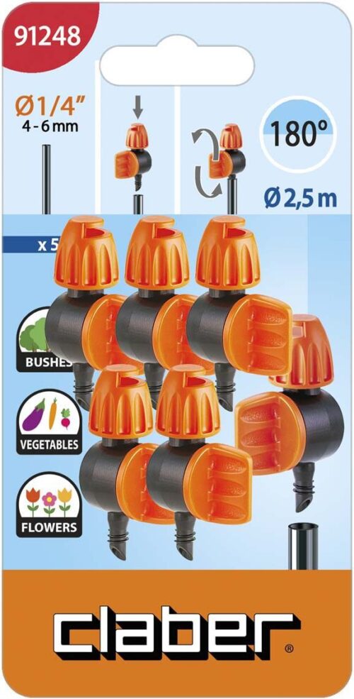 180° kastmisraadiusega ja ma x 10 m2 kastev mikrovihmuti. Sobib paigaldamiseks nii peatorule ½“ kui ka ühendamiseks ¼“ hargnemistorule.