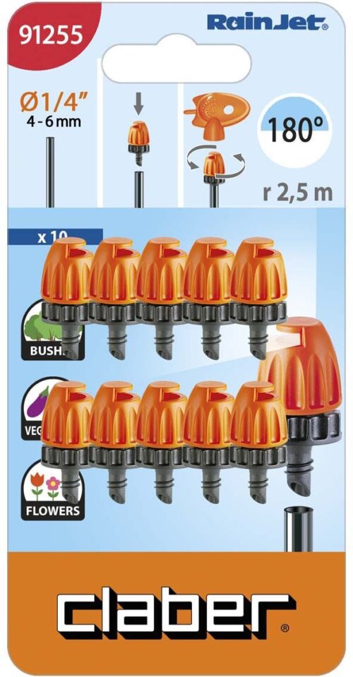180° kastmisraadiusega ja ma x 10 m2 kastev mikrovihmuti. Sobib paigaldamiseks nii peatorule ½“ kui ka ühendamiseks ¼“ hargnemistorule.