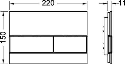 (harjatud roostevabast terasest), klaasist, kahesüsteemse loputusega Loputusnupp TECE paakidele, käivitus eest või pealt. Madal klaasist loputusplaat, millel on kaks vedrusüsteemiga käivitusnuppu. Sobib süvispaigalduseks koos süvispaigaldatava loputusnupu paigaldusraamiga (nt tootekood 9240649). Ühildub puhastustablettide sisestusavaga. Mõõtmed (laius x kõrgus x sügavus): 220 x 150 x 11 mm Tarnekomplekt ei sisalda loputusnupu paigaldusraami süvispaigalduseks; palun tellige see eraldi!