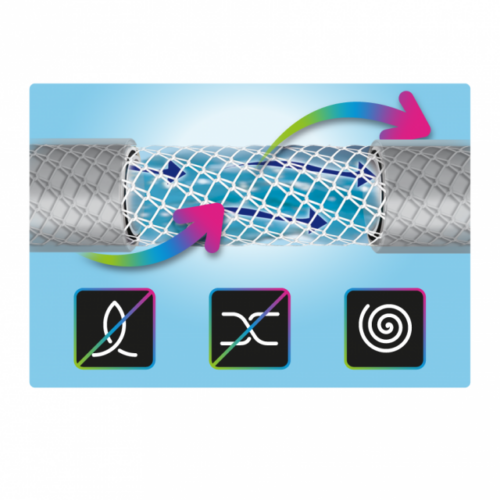 6-kihilise struktuuriga voolik- kollase sisemise kihiga, vetikavastane must kiht, kollane vahekiht, NTS-helikoidaalse võrgusilmusega eelpingestatud kudum ja läbipaistev väliskate- SKY TECH-kile, millel on spetsiaalne UV-kiirguse vastane koostis, mis ennetab vooliku vananemist ja annab sellele spetsiaalse satiinviimistluse. NTS- eelpingestatud kudum tagab vooliku elastsuse ning välistab sõlmede ja pusade tekke- samuti külgsuunalised rullumised. Eriti mugav kasutada kärudel, poolidel, autopesul ja muul aktiivsel kasutusel. Vooliku väljanägemine on tehtud veelgi uuenduslikumaks erilise disainiga.Voolik on saadaval ½”, 5/8”, ¾” ja 1” mõõtudes ning 25m ja 50m rullides. Rõhutaluvus varieerub vastavalt mõõtudele 21-27 bar.