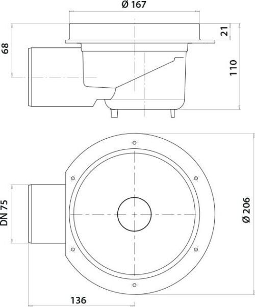 Vieseri madal trapp DN75 on 75 mm kanalisatsiooniühendusega varustatud põrandatrapp, mille saab paigaldada puit- ja betoonkonstruktsioonidesse.