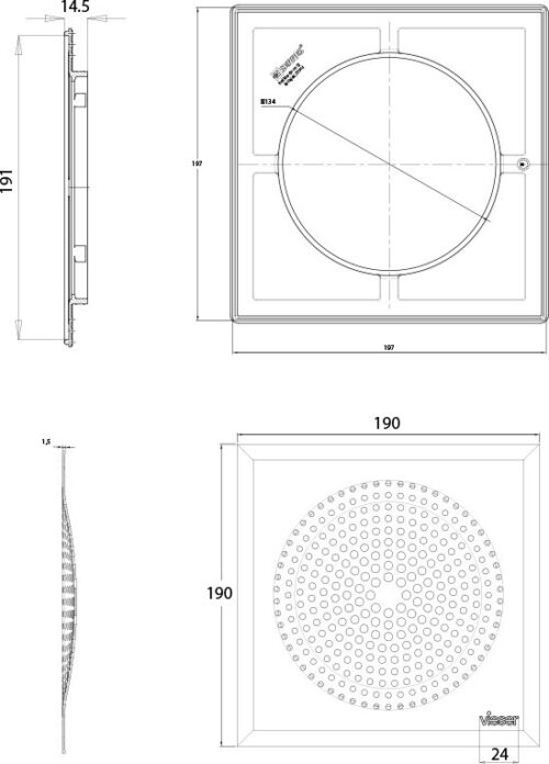 Vieser Modern on roostevabast terasest valmistatud põrandatrapi kaas ja plastraam.
