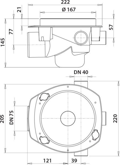 Vieser One’i horisontaaltrapp DN75 on 75 mm kanalisatsiooniühenduse ja kolme 32/40 mm avatava külgliitmikuga põrandatrapp, mille saab paigaldada puit- ja betoonkonstruktsioonidesse.